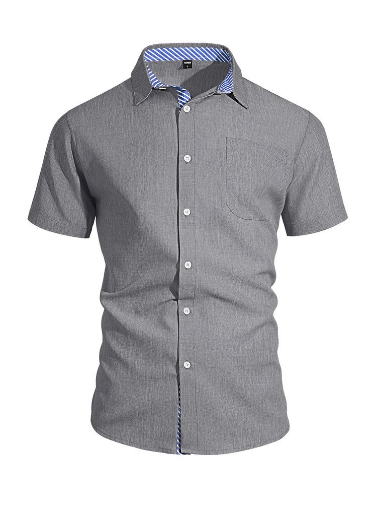Men's Lapel-Button Cotton-Linen Pocket Short Sleeve